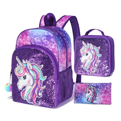 Girls 3-in-1 School Backpack Set – Unicorn & Mermaid Tail Styles with Lunch Bag & Pencil Case